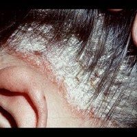 Psoriasis looks like silvery, scales on the surface of the skin. The scales on the scalp are generally thick and firmly adhered to it.