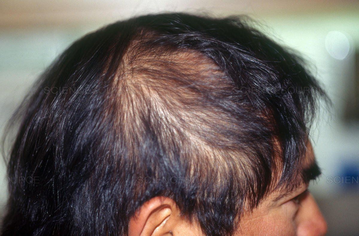 alopecia areata for example. The anagen phase of hair growth is interrupted and hair is seen in a weakened state and in less volume throughout the scalp.